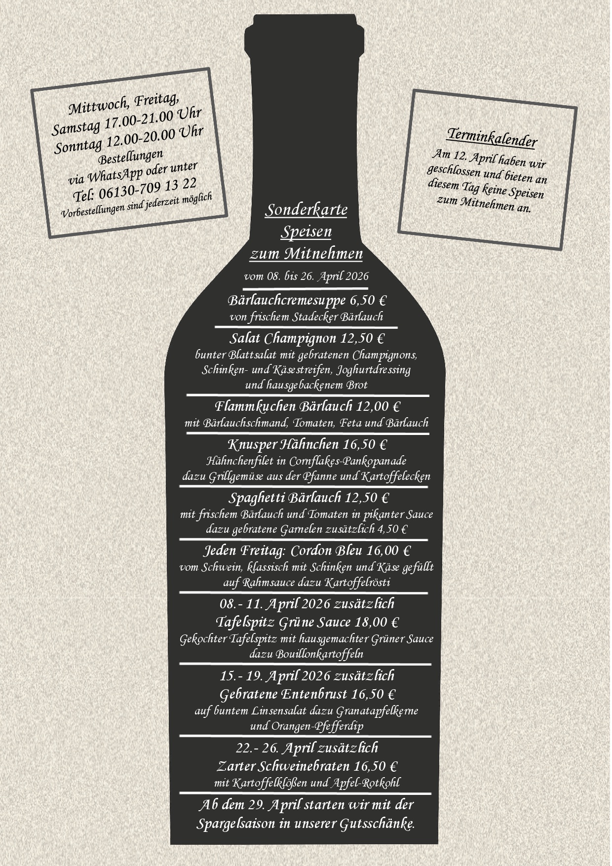 Wir haben neben unserer Klassiker-Karte-ToGo eine wechselnde Sonderkarte-ToGo.